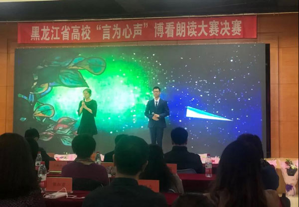 4月21日上午,由哈尔滨工业大学主办、博看数据库承办的“言为心声”博看朗读大赛决赛在哈尔滨工业大学活动中心101举行。广厦学院2018级应用心理学一班的黄飞博同学在面对众多优秀的选手时,不负众望超长发挥并最终取得优异的成绩。